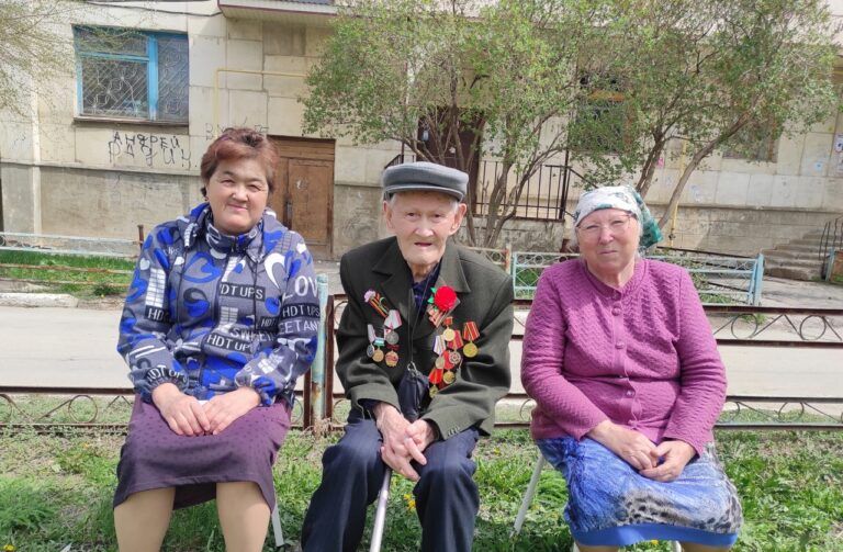 Для ветеранов были исполнены: танец “Солдаты на отдыхе”, песни военных лет, мелодии на курае и баяне.