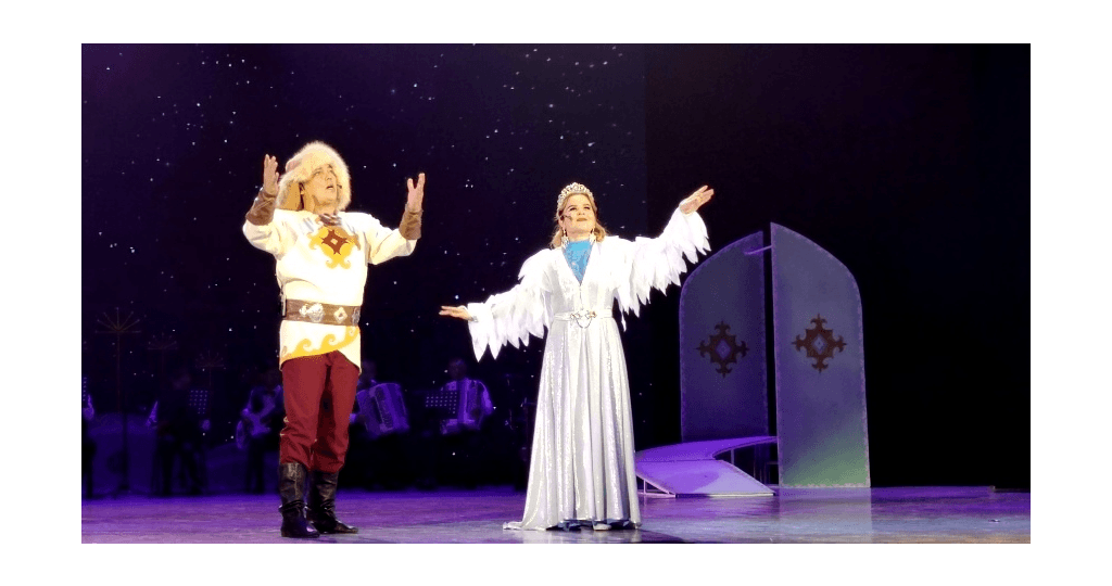 Роли исполняют: Отец – Ильнур Салимгареев, сыновья – Альфир Заманов, Нух Кутуев, Урал-батыр – Фларид Биргалин, Хомай – Зария Рысмухаметова, Катил-батша – Ильдар Рахимгулов, Старец – заслуженный артист РБ Рустам Хасанов, Дочь Катил-батши – Сумбуль Муратова, Бык – Сынгиз Муллагалямов, Дракон – заслуженный артист РБ Гаяз Гаетбаев. В массовых сценах участвовали артисты ансамбля народного танца «Сибай» (руководитель – заслуженный артист РБ А.А Набиуллин). Театрализованная постановка сопровождалась живой музыкой в исполнении оркестра народных инструментов под руководством Дмитрия Шарафиева.