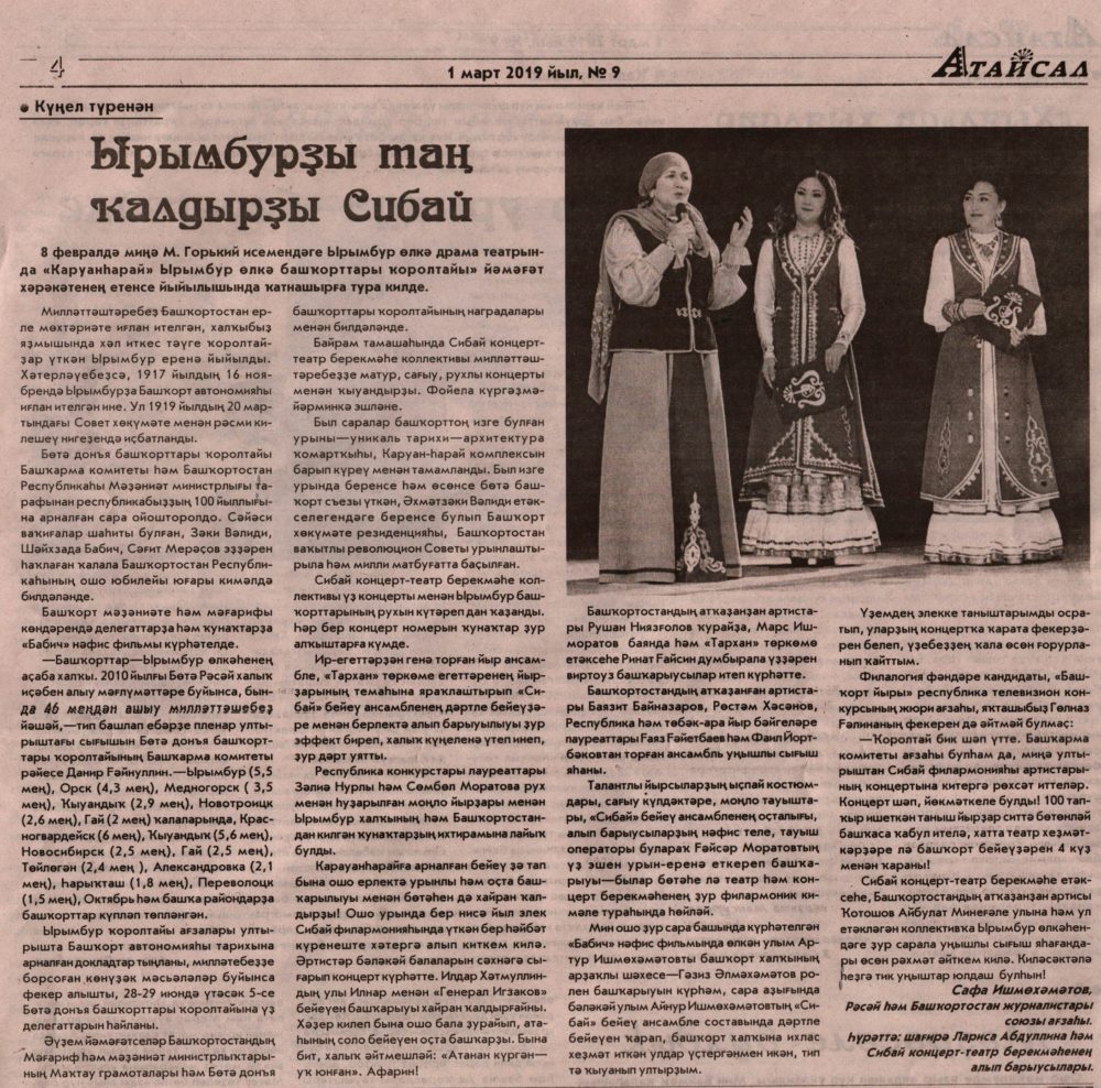 “Атайсал” гәзите, 1 март 2019 йыл, №9