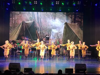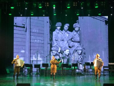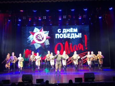 В праздничной программе артисты-вокалисты вместе с оркестром и в одиночку, дуэтом и трио исполняли военные песни и современные композиции.