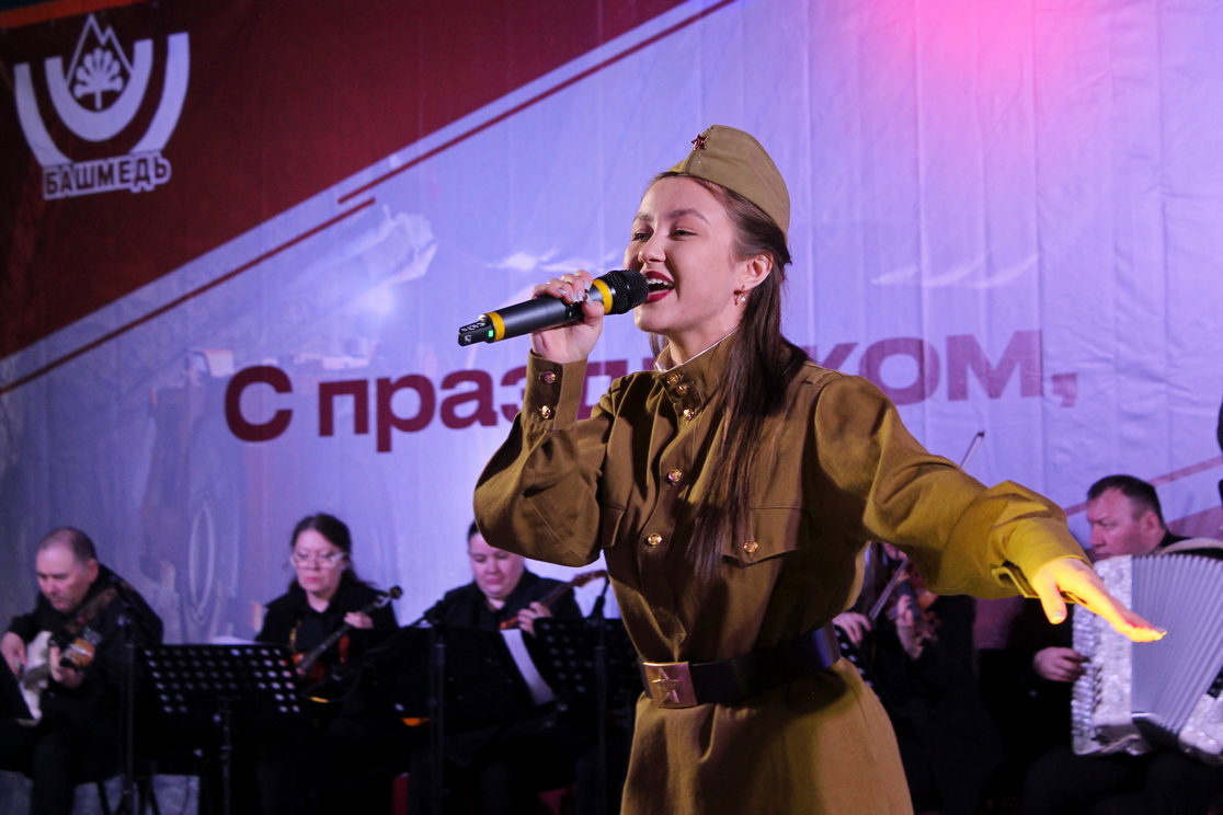 В исполнении заслуженных артистов Республики Башкортостан Рустама Хасанова, Гаяза Гаетбаева, лауреатов международных, республиканских вокальных конкурсов Фаиля Юртбакова, Забиры Аминевой, Азамата Ахметханова, Азата Искужина, Алины Вахитовой, Ягафара Надршина, Миры Харрасовой в сопровождении оркестра прозвучали знаменитые песни «Журавли», «Смуглянка», «Нам нужна одна Победа», «Эх, дороги», «День Победы» и многие другие произведения, которые стали настоящим символом праздника Победы.