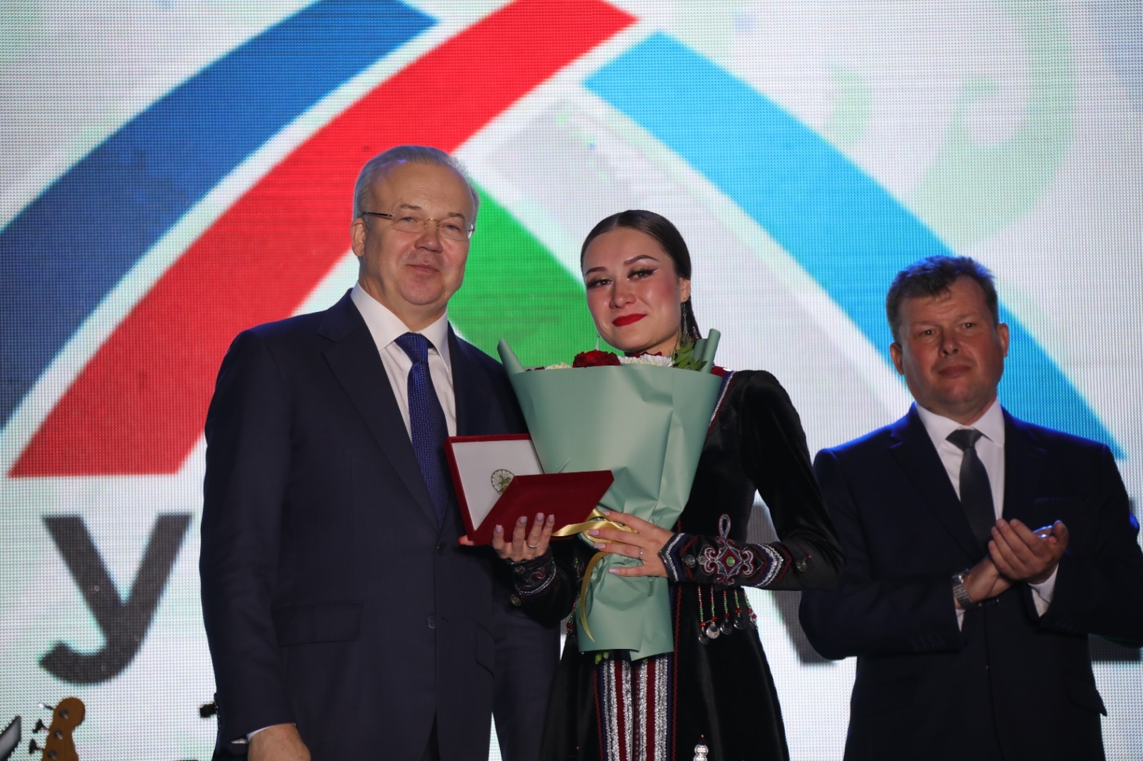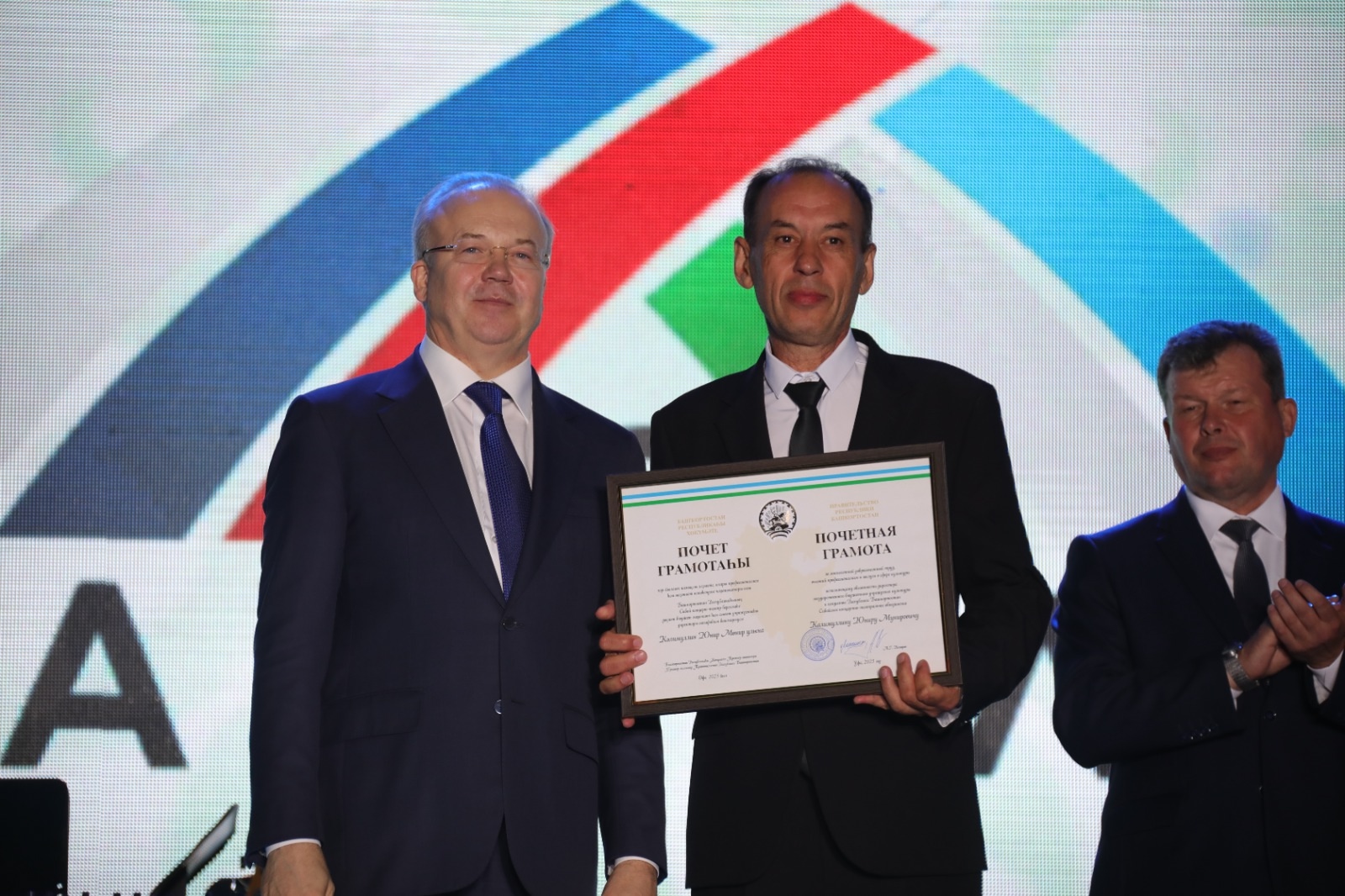 Премьер-министр Башкортостана Андрей Геннадьевич Назаров на торжественном концерте в рамках празднования Дня города и Всероссийского инвестиционного сабантуя “Зауралье – 2025” торжественно вручил государственные награды и почетные грамоты.