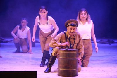 Сегодня на сцене большого зала филармонии прошла постановка детского театра “Сулпан” – спектакль “А зори здесь тихие…”. Пронзительная история о войне, одна из многочисленных страниц хроники Великой Отечественной, унесшей множества жизней.