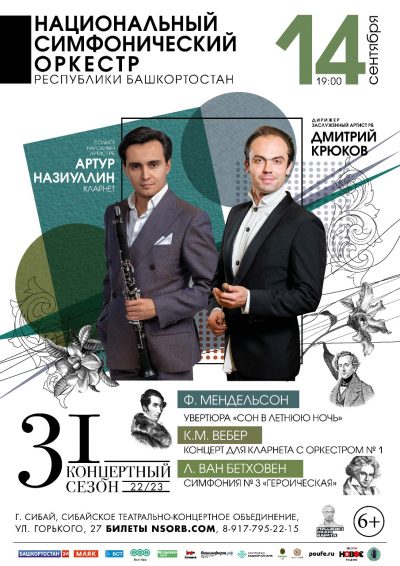 Солист – народный артист РБ, солист программ Московской государственной академической филармонии Артур НАЗИУЛЛИН (кларнет). Дирижер – заслуженный артист РБ, главный дирижер оркестра Дмитрий КРЮКОВ.