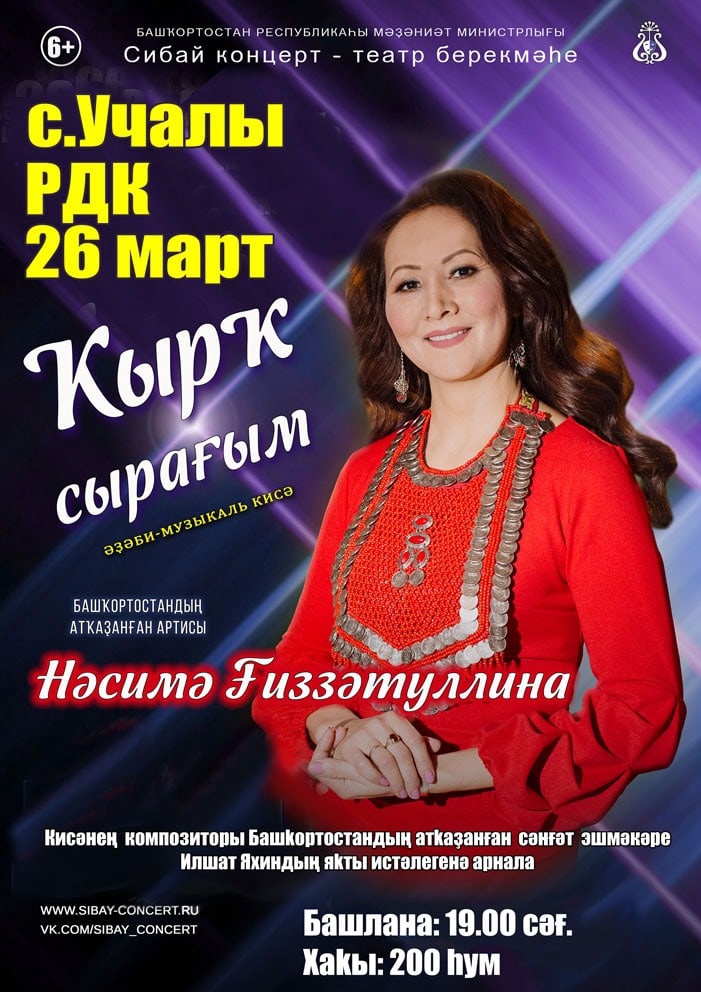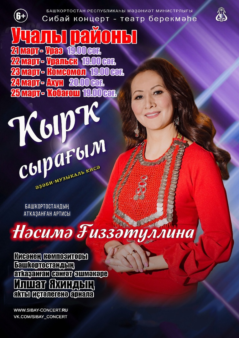 Сибай концерт-театр берекмәһенең нәфис һүҙ оҫтаһы Башҡортостандың атҡаҙанған артисы Нәсимә Ғиззәтуллина “Ҡырҡ сырағым” исемле моноспектакль менән Учалы районы буйлап гастролгә сыға. 21 март – Ураҙ ауылы, 22 март – Уральск ауылы, 23 март – Комсомол ауылы, 24 март – Ахун ауылы, 25 март – Ҡобағош ауылы. Тамашаның композиторы Башҡортостандың атҡаҙанған мәҙәниәт хеҙмәткәре Илшат Яхин. Был…