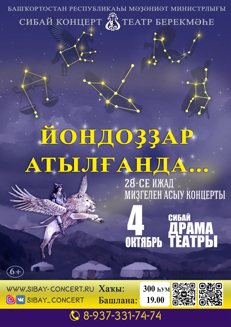 Внимание!!!!! Дорогие друзья! Сибайское концертно-театральное объединение с новой постановкой “Йондоҙҙар атылғанда” открывает 28-й ТВОРЧЕСКИЙ СЕЗОН . Космос и таинственный мир звезд издревле манил к себе умы многих народов. Великий эпос башкирского народа “Урал-батыр” это странствие по созвездиям следуя пути Солнца. У башкир знание о небесных телах приравнивалось к знанию карты мира. Как раз об этом…