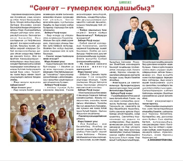 Бөрйән районының «Таң» гәзитендә беҙҙең берекмә артистары – Зәбирә Әминева һәм Башҡортостандың атҡаҙанған артисы Марс Ишморатов ғаиләһе тураһында мәҡәлә донъя күрҙе.